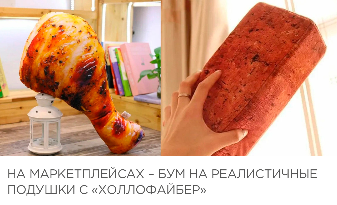 В-пятых, «реалистичные подушки» с «Холлофайбер» популярны у трейдеров, которые делают 100% и более за «наценку за креатив» по сравнению с типовыми размерными подушками.