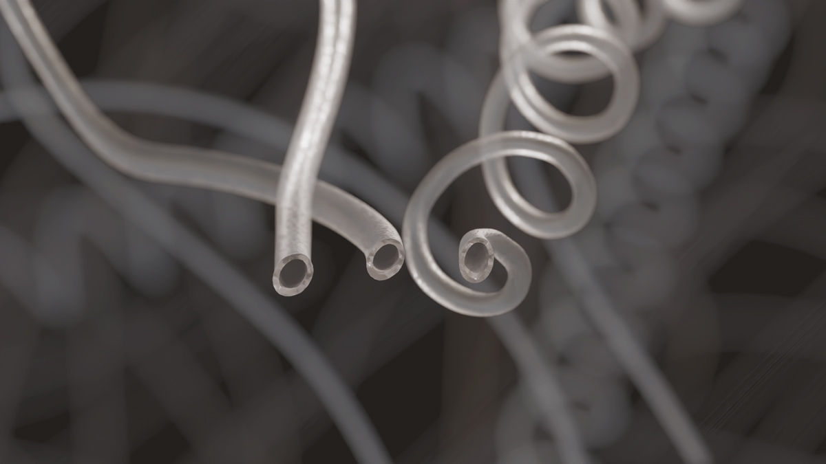 Особый интерес исследователей вызвало изучение полых полиэфирных мононитей. Микрофотографии, представленные в статье, демонстрируют, что внешняя поверхность мононити не является гладкой, а напоминает гофрированный шланг. Такая структура способствует усилению взаимозацепления (трения) между волокнами, что напрямую влияет на прочностные характеристики и целостность полотна.
